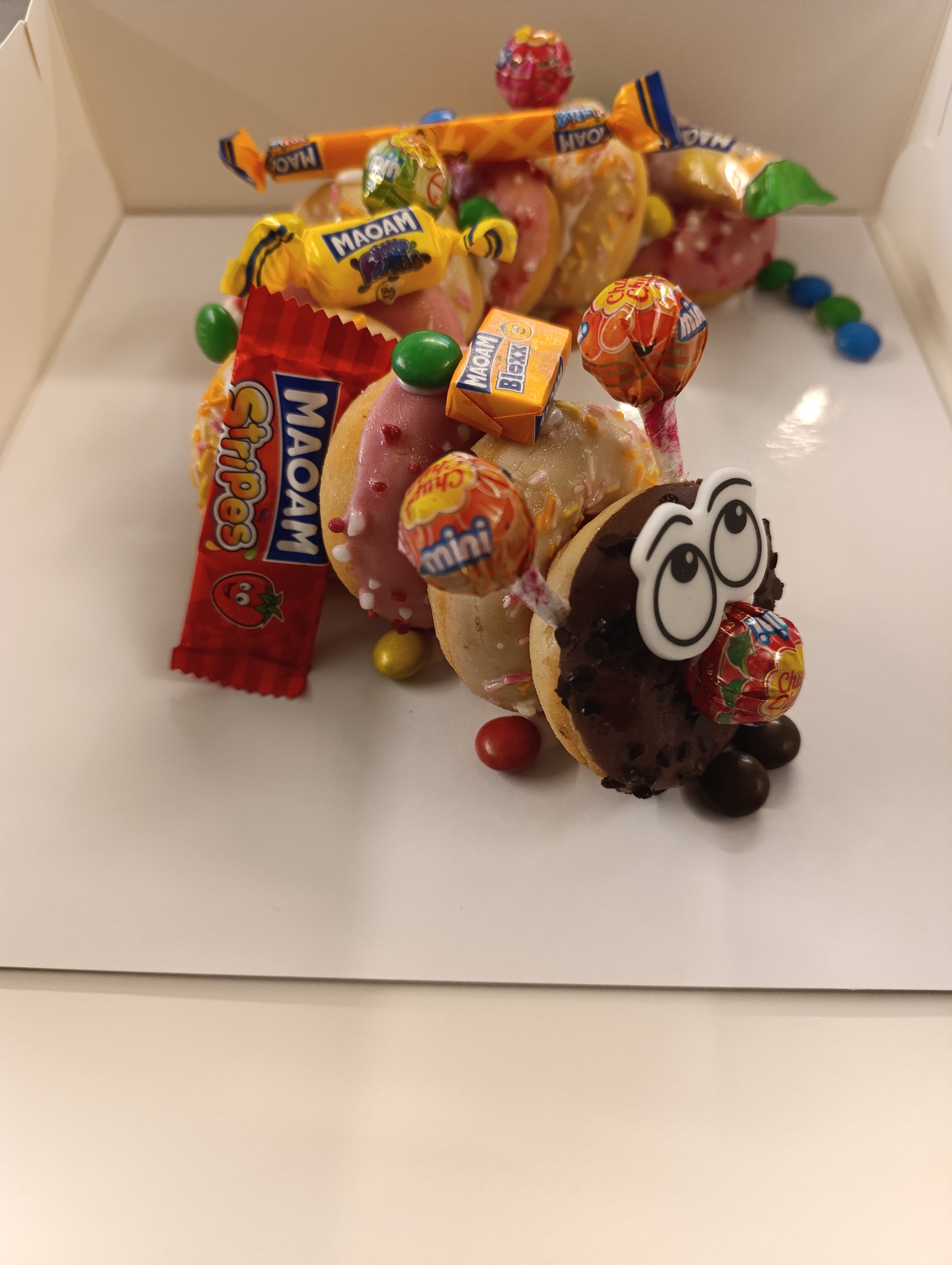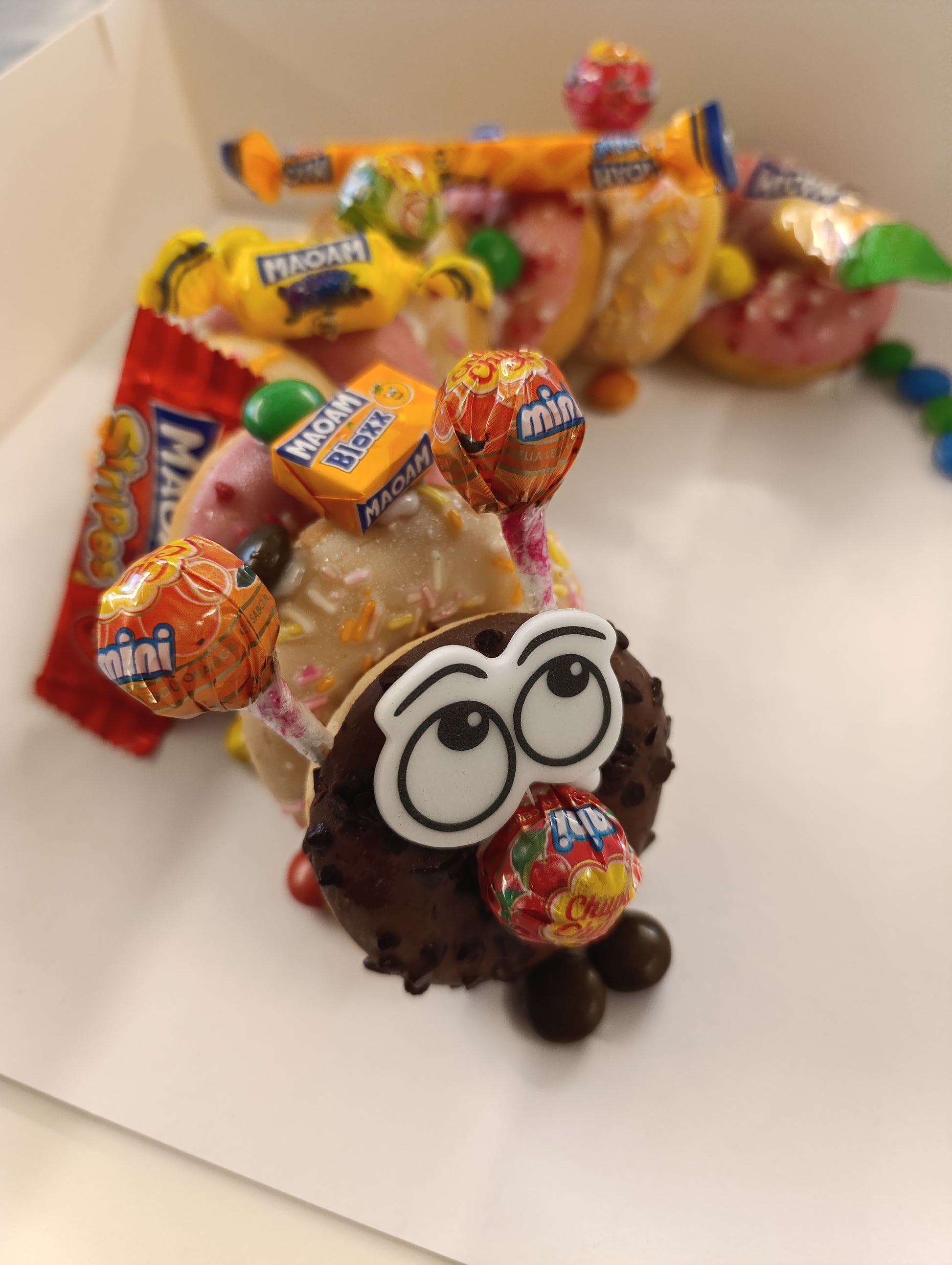 Bestaand uit 9 mini donuts in verschillende kleuren.