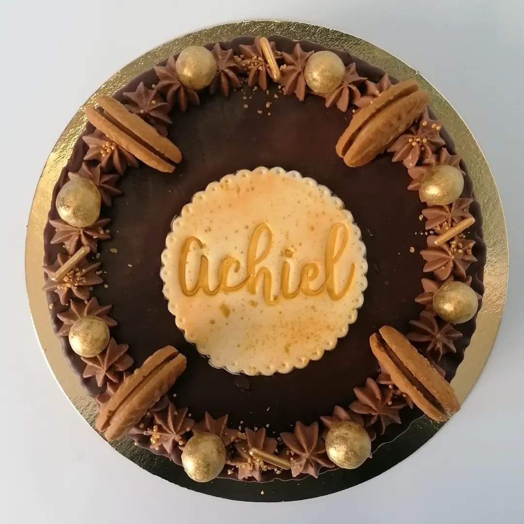 Crunchy bodem van gepofte rijst en chocolade, chocolade biscuit en speculoos tiramisu.
